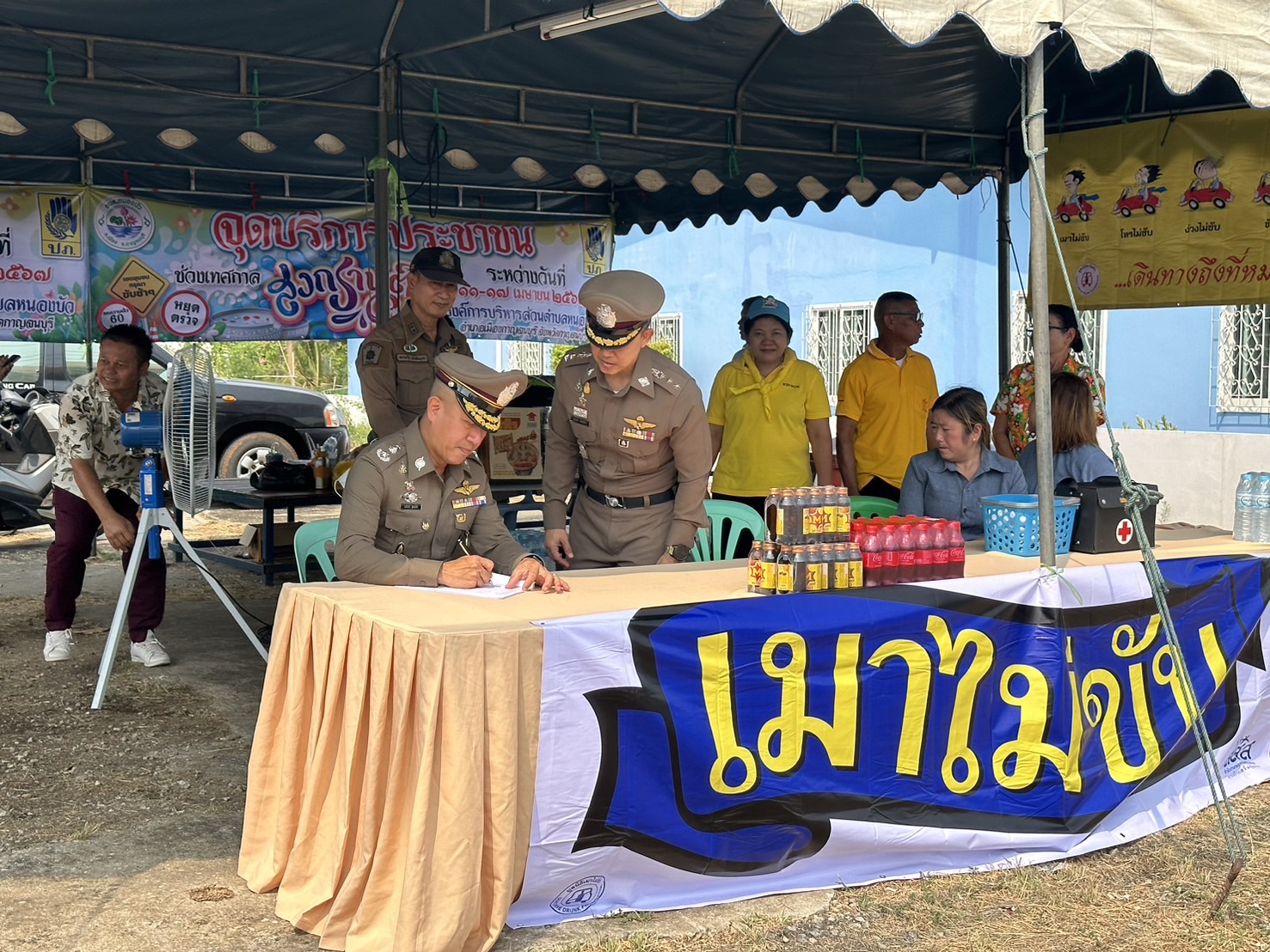 ตรวจเยี่ยมจุดบริการประชาชนหน้าจุดตรวจตำบลหนองบัว ถ.แสงชูโต ต.หนองบัว อ.เมือง จ.กาญจนบุรี เพื่อป้องกันและลดอุบัติเหตุทางถนนช่วงเทศกาลสงกรานต์ พ.ศ. 2567