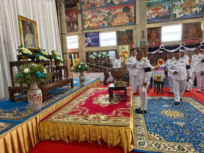 ผบก.ภ.จว.กาญจนบุรี พร้อมด้วยข้าราชการตำรวจ เข้าร่วมพิธีถวายน้ำสรงพระบรมศพหน้าพระบรมฉายาลักษณ์ สมเด็จพระนางเจ้าสิริกิติ์ พระบรมราชินีนาถ พระบรมราชชนนีพันปีหลวง