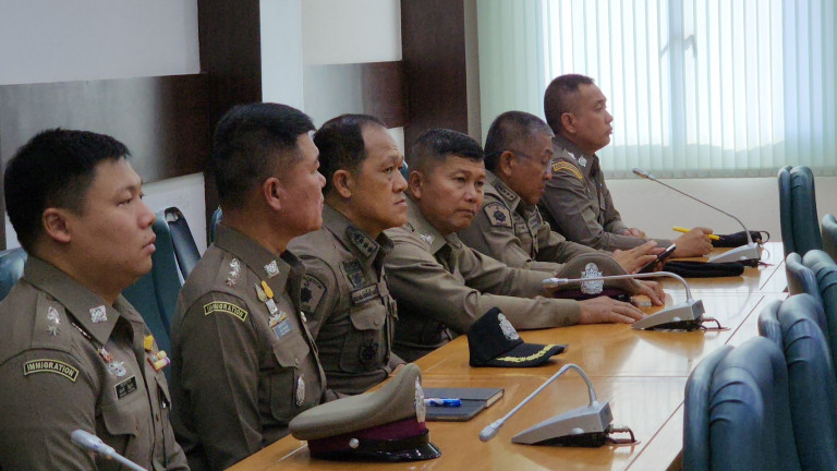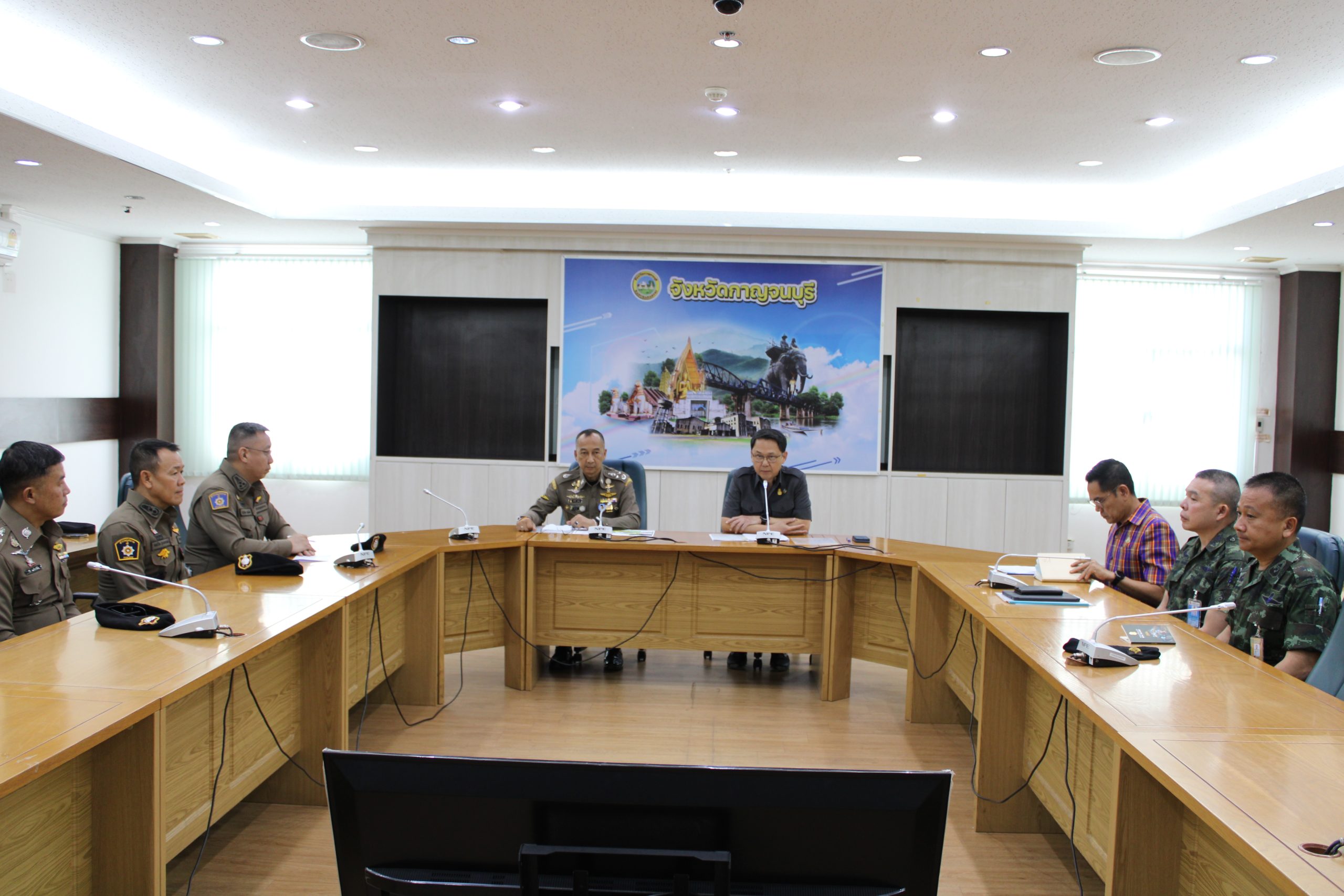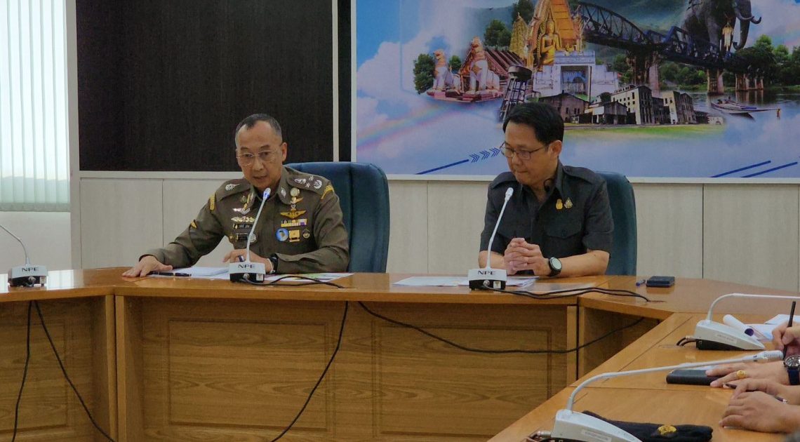 วันที่ 27 ก.พ.67 เวลา 15.00 น. พล.ต.อ.ต่อศักดิ์ สุวิมล ผบ.ตร. พร้อม พ.ต.อ.ศิริวัฒน์ ดีพอ รองโฆษก ตร.เดินทางโดย เฮลิคอปเตอร์ มาลงที่ สนามจอด ฮ.กองบังคับการตำรวจภูธรจังหวัดกาญจนบุรี โดยมี พล.ต.ท.นัยยะวัฒน์ เผดิมชิตต ผบช.ภ.7 และ พล.ต.ต.นครินทร์ สุคนธวิท ผบก.ตร.ภ.กาญจนบุรี พ.ต.อ. กรณ์ สมคะเนย์ ผกก.ตม.กาญจนบุรี พ.ต.ทำ.กฤษฎา จันทร์อุทัย สวญ.ส.ทท.1 กก.1 บก.ทท.3 (กาญจนบุรี) และ ตร.หน.สถานีตำรวจในพื้นที่ จ.กาญจนบุรี ร่วนต้อนรับและประชุมที่ศปก.ภ.จว.กาญจนบุรี โดยพล.ต.ท.นัยยะวัฒน์ และ พล.ต.ต.นครินทร์ รายงานบรรยายสรุปข้อมูลเกี่ยวกับ สถานการณ์และแผนปฏิบัติการปราบปรามสิ่งของผิดกฎหมายในพื้นที่กาญจนบุรี และผลการปฏิบัติการเกี่ยวกับป้องกันปราบปรามยาเสพติดกับสินค้าผิดกฎหมายตามแนวชายแดน รวมถึงการบูรณาการแก้ปัญหาการลักลอบขนยางพาราเถื่อนข้ามแดนและการนำผ่านยางพาราผ่านแดนช่องทางบ้านพระเจดีย์สามองค์ หลังจากนั้น เวลา 15.30 น. พล.ต.อ.ต่อศักดิ์ พร้อมคณะได้เดินทางไปที่ห้องประชุม ชั้น 3 ศาลากลางจังหวัดกาญจนบุรี ร่วมประชุม กับ ร้อยโททศพล ไชยโกมินทร์ ผวจ.กาญจนบุรี พ.อ.อัษฎาวุธ ปันยารชุน รอง ผบ.พล.ร.9 รอง ผบ.กกล.สุรสีห์ ผู้แทนหน่วยฉก.ลาดหญ้า และ หัวหน้าส่วนราชการที่เกี่ยวข้องกับข้อสั่งการของนายเศษฐา ทวีสิน นายกรัฐมนตรีที่สั่งการให้จังหวัดกาญจนบุรี ดำเนินการในหลายเรื่อง โดย ร้อยโททศพล ได้กล่าวในที่ประชุมว่า สืบเนื่องจากนายกรัฐมนตรีได้สั่งการให้จังหวัดกาญจนบุรี ดำเนินการเกี่ยวกับเรื่องปัญหายางพาราทรานสิต และการลักลอบนำเข้าแรงงานต่างด้าวเข้าเมืองผิดกฎหมาย และยาพาราจากประเทศเพื่อนบ้าน โดยยางพาราทราตสิตเป็นเรื่องการค้าระหว่างประเทศ เป็นหน้าที่ของกรมศุลกากรพิจารณาดำเนินการ ส่วนทางจังหวัดกาญจนบุรีได้เข้าไปดำเนินการเกี่ยวกับการแก้ไขปัญหาผลกระทบเกี่ยวกับการขนส่งและผลกระทบชุมชนและการท่องเที่ยวในพื้นที่ให้เกิดผลกระทบน้อยที่สุดและได้มีการประสานต่อกรมศุลกากรเพื่อขอให้ทบทวน และย้ายการผ่านแดนไปเปิดบริการผ่านแดนที่ช่องทางจุดผ่านแดนบ้านพุน้ำร้อนที่มีความพร้อมรองรับในทุกด้าน ส่วนสถานการณ์ไฟป่า ได้ร่วมกับกรมอุทยานและท้องถิ่นชุมชนในทุกพื้นที่ทำการประชาสัมพันธ์และร่วมกันดับไฟป่าทุกพื้นที่รวมถึงทาง ปภ.ได้ส่งเฮลิคอปเตอร์ 2 ลำมาช่วยตักน้ำเร่งดับไฟในเขตป่า จนทำให้จุดความร้อนลดน้อยลงไปมากขณะที่เรื่องสังคมคือหนี้นอกระบบก็ดำเนินการตามนโยบายของกระทรวงมหาดไทยอย่างครบถ้วนแล้ว ส่วนเรื่องปัญหาด้านความมั่นคงชายแดนการปราบปรามสินค้าเถื่อนและการกระทำผ