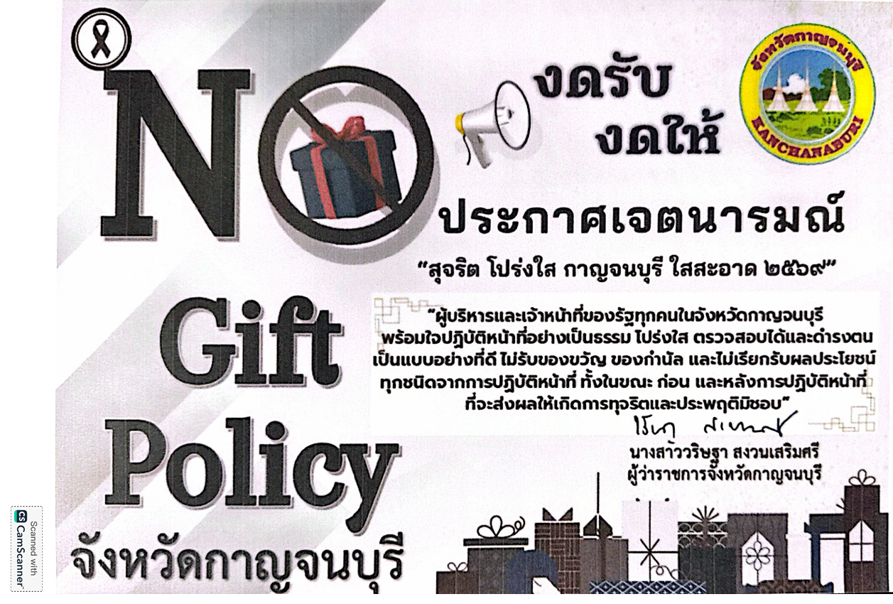- ประกาศสำนักงานยุทธศาสตร์ตำรวจเรื่องเจตนารมณ์ที่จะไม่รับของขวัญหรือของกำนัลทุกชนิดจากการปฏิบัติหน้าที่
